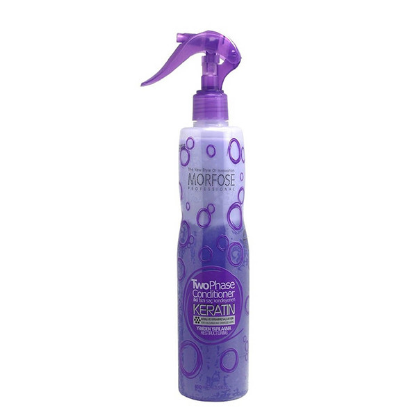 اسپری دو فاز مورفوس حاوی کراتین حجم 400 میل برای استفاده موهای رنگ شده و آسیب دیده ایده آل می باشد چرا که به احیاء موها کمک شایانی می کند. همچنین از موها در برابر حرارت سشوار، اتو موی صاف کننده و ابزارهای حالت دهنده محافظت می کند و مانع آسیب به موها می شود. احیا کننده مو مورفوس از دو فاز تشکیل شده است که یک فاز آن آبرسان و فاز دیگر سیلیکونی می باشد. فاز سیلیکونی سبب نرمی و لطافت بخشیدن به موهای شما شده و آن ها را شفاف و درخشان جلوه خواهد داد. فاز آبرسان مواد مغذی و پروتئینی را به ساقه های مو و همچنین ریشه آن ها می رساند که این امر سبب افزایش مقاومت موهایتان در برابر حرارت انواع ابزارهای حالت دهنده مو می شود.